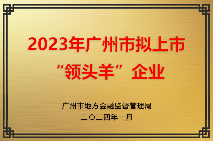 1月,荣获2023年广州市“拟上市”领头羊企业称号。
