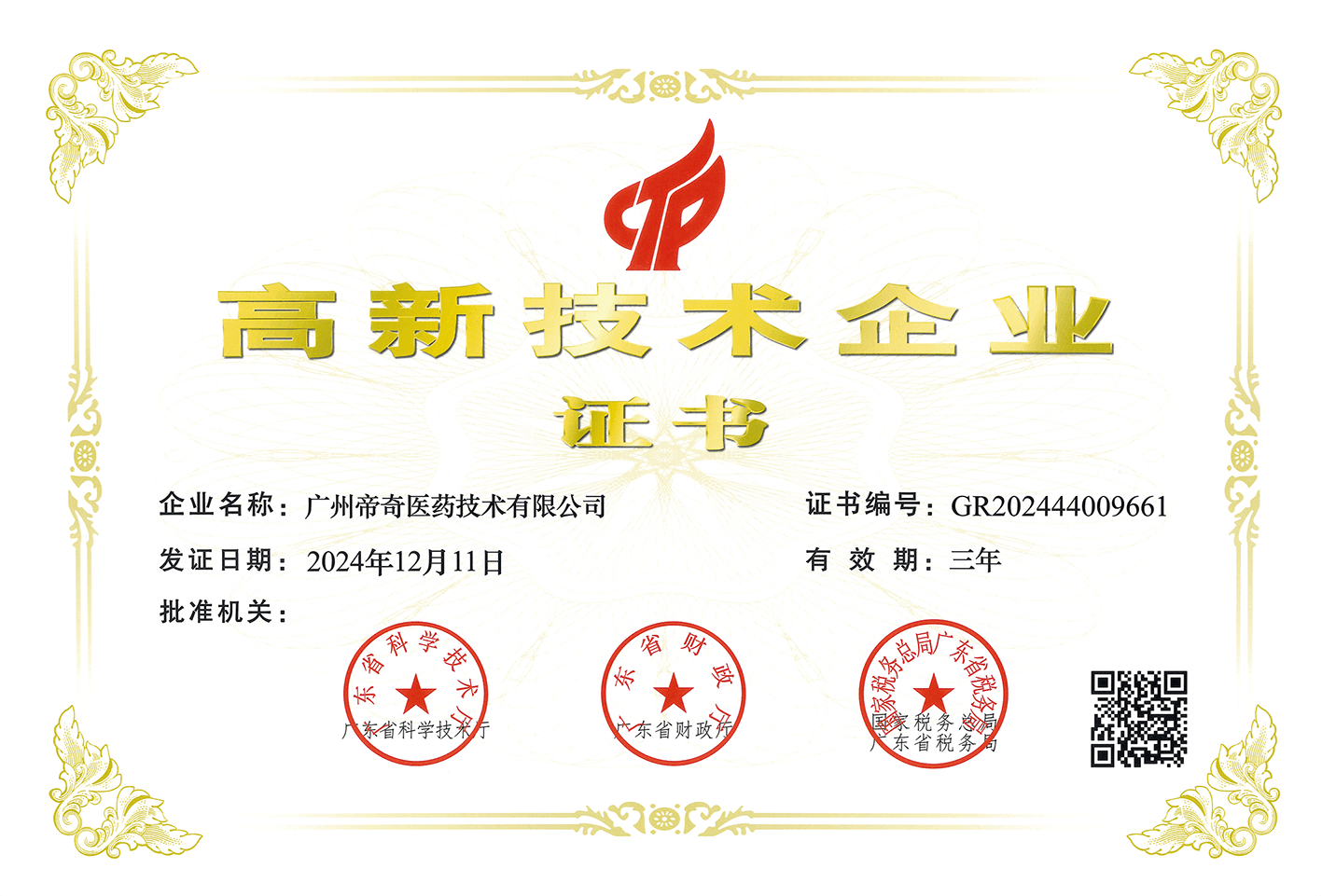 6月,被认定为广州帝奇仿制药及创新药研发和咨询服务机构